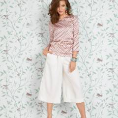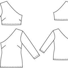 Beden 34, 36, 38, 40, 42 Belden, itibaren boy 23 cm 7/8 kol boyu (10 cm kısa) Malzeme: Bluz A: Elastik ipek saten, enine elastik, 130 cm ende: 1.65-1.65- 1.65-1.80-1.80 m. Tela. Çift iğne. Bluz B: Elastik jarse, 145 cm ende:1.30-1.30-1.30-1.70-1.70 m. Malzeme için bkz. model A. Kumaş önerisi: İnce elastik ipek ve jarse kumaşlar. Enine ya da çift yöne esneyen kumaş.