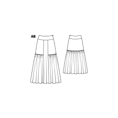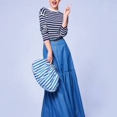 Orijinal kumaş: A Desenli viskon (enine çizgili), B ince kot kumaşı