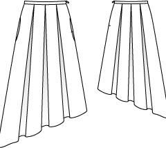 Beden 34, 36, 38, 40, 42, 44 Etek boyu ön ve arka ortada 83 cm, yanlarda 95/72 cm Malzeme: 145 cm ende enine elastik fay kumaş: 2.25 m her bedene. Tela. 1 gizli fermuar, 22 cm ve özel makine ayağı. Kumaş önerisi: Biraz dik duran, düz ya da esnek etek kumaşı.