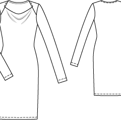 Beden 34, 36, 38, 40, 42 Belden itibaren etek boyu 66 cm Kol boyu 10 cm uzun Malzeme: Nervürlü elastik jarse (yatay), 135 cm ende: 2.10 m her bedene. Verev bant, 4 cm ende: 0.35 m. Tela bant. Çift iğne. Kumaş önerisi: Elastik jarse.