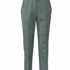 Beden 36, 38, 40, 42, 44 Yan boy 94 cm Paça bolluğu 42 cm. Düşük belli Kumaş önerisi: Elastik pantolon kumaşı. Sadece elastik kumaş. Orijinal kumaş: Streç pamuklu. Malzeme: Tela. Biye bandı: 0.55 m her bedene. 1 fermuar, Bd 36, 38: 16 cm, Bd 40 – 44: 18 cm. 1 pantolon kancası. Kumaş kaplı 2 düğme.