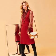 Tela. 1 gizli fermuar, 60 cm ve özel makine ayağı. 3 düğme.