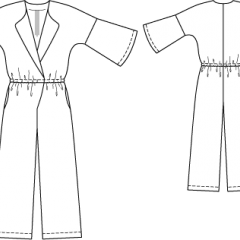 Uzun beden 72, 76, 80, 84, 88 Yan pantolon boyu 94 cm Paça bolluğu yaklaşık 60 cm Malzeme: 150 cm ende boydan çizgili ham ipek: 3.00 m her bedene. Tela. Kemer telası. Tela bant. 1.5 cm ende lastik: 0.75-0.75-0.80-0.85- 0.90 m. 2 dikişli çıtçıt. 1 kumaş kaplı kemer tokası (iğnesiz), 6 cm ende. Kumaş önerisi: İnce ve dökümlü kumaş.