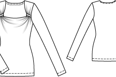 Beden 36, 38, 40, 42, 44 Arka bluz boyu yaklaşık 70 cm Kol boyu 10 cm daha uzun Malzeme: Elastik jarse, 140 cm ende: 1.60-1.60-1.60-2.00-2.00 m. Tela bant. Çift iğne. Kumaş önerisi: İnce elastik jarse, çift yöne esnek kumaş.