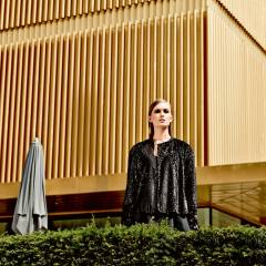 Beden 36, 38, 40, 42, 44 Arka boy yaklaşık 60 cm Malzeme: 135 cm enden payetli esnek kumaş: 1.35-1.40-1.40-1.45-1.45 m. 135 cm enden streç astar: 1.35-1.40-1.40-1.45-1.45 m. Tela bant. 2 büyük dikişli çıtçıt. Kumaş önerisi: Yumuşak dö- kümlü payetli kumaş ya da ceket kumaşı, elastik kumaş ideal.