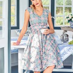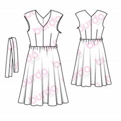 Malzeme A, B, C: Tela bant. 1 gizli fermuar 40 cm. Elbise B için: Kemer için: Tela. 0.15 m x 1.20 m astar. Kumaş kaplı 1 kemer tokası, 4 cm.