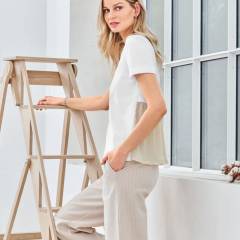 Jarse, dökümlü bluz kumaşıyla kombin. Bluzu (kumaş I) elastanlı jarseden dikin.