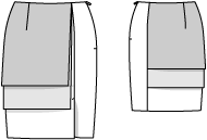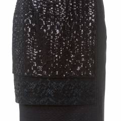 Beden 34, 36, 38, 40, 42, 44 Etek boyu 58 cm Malzeme: 140 cm enden jakar: 0.70 m her bedene. 130 cm enden parlak tabakalı dantel: 0.55 m. Payetli şifon, enine desenli, 130 cm ende: 0.45 m. 140 cm enden astar: 0.65 m. Tela. Tela bant. 1 gizli fermuar, 22 cm ve özel makine ayağı. Kumaş önerisi: Biraz dik duran etek kumaşı. Üst etek katları için yarı transparan hafif sert kumaş.