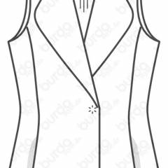 Beden 34, 36, 38, 40, 42 Arka boy 70 cm Kumaş önerisi: Yünlü ya da sentetik katkılı. Orijinal kumaş: Yün örgü kumaş. Malzeme: Tela. 1 büyük dikişli düğme. Cep torbası için astar parçası.