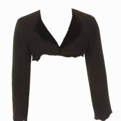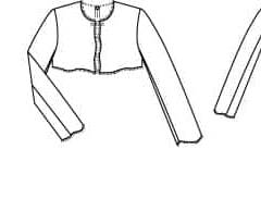 Bolero: Kuzu kürkü (üstü deri, altı kürk). Bu modelin 19 bedeni için 3 deri tabakası, toplam 17 ayak deri gerekli (1 ayak = 30 x 30 cm). Diğer bedenler için satıcıya danışarak deri alın ve modelin patronunu gösterin.