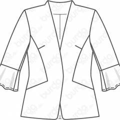 Beden 34, 36, 38, 40, 42, 44 Arka boy 62 cm Kumaş önerisi: İnce ceket kumaşı. Orijinal kumaş: Viskon – sentetik, astar. Malzeme: 1 dikişli çıtçıt.