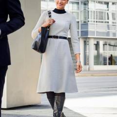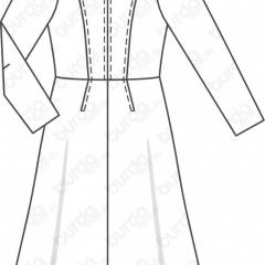 Beden 36, 38, 40, 42, 44 Etek boyu 69 cm Kumaş önerisi: Düz ya da esnek elbise kumaşı, hafif tok kumaş. Orijinal kumaş: Elastanlı polyester viskon, astar. Malzeme: Tela. 1 gizli fermuar, 60 cm ve özel makine ayağı