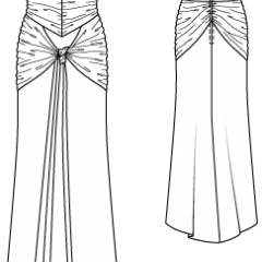 Uzun beden 72, 76, 80, 84, 88 Belden itibaren ön orta boy 120 cm, arka orta boy 128 cm Malzeme: 135 cm ende krep saten: 5.80 m her bedene. Tela. Dokuma tela. 11 mm ende balen çubuğu, 0.65 m. 7 mm ende balen çubuğu 1.25 m. 5 mm ende lastik: 0.55-0.60-0.60-0.60-0.65 m. 1 fermuar, 50 cm. Kumaş önerisi: Yumuşak ve dökümlü kumaş.