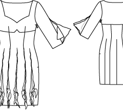 Beden 36, 38, 40, 42, 44 Belden itibaren etek boyu 53 cm 3/4 kol boyu (18 cm kısa) Malzeme: 135 cm enden krep maroken: 2.70 m her bedene. 140 cm enden astar: 0.40-0.40-0.45-0.45- 0.45 m. Tela bant. 1 gizli fermuar, 40 cm ve özel makine ayağı. Kumaş önerisi: Yumuşak ve dökümlü kumaş. İki yüzü güzel kumaştan dikin.