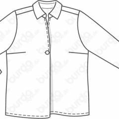 Beden 44, 46, 48, 50, 52 Arka boy 67 cm Kumaş önerisi: İnce bluz kumaşı. Orijinal kumaş: Viskon krep. Malzeme: Tela. 2 küçük ve 1 büyük düğme.