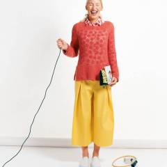Beden 36, 38, 40, 42, 44 Belden itibaren yan boy 82 cm Paça bolluğu 82-85-89-92-96 cm Malzeme: Pantolon etek A: Elastik pamuklu saten, 140 cm enden: 1.80 m her bedene. Tela. 1 fermuar, 16 cm. 1 düğme. Pantolon etek A: Elastik pike, 140 cm ende. Kumaş ölçüsü ve malzeme için bkz. model A. Kumaş önerisi: Biraz dik duran kumaş, düz ya da esnek.