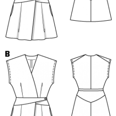 Malzeme: Elbise A: 130 cm enden ipek krep: 2.20-2.20-2.20-2.40-2.40 m. Tela. 1 büyük çıtçıt ve 3 küçük çıtçıt, dikişli. Çıtçıtları kaplamak için astar. Elbise B: 140 cm enden pamuklu saten:2.55-2.55-2.55-2.75-2.75m. Tela. 1 büyük çıtçıt ve 2 küçük çıtçıt, dikişli. 1 düğme. Kumaş: İnce elbise kumaşı.
