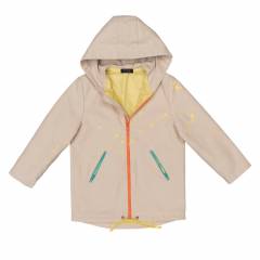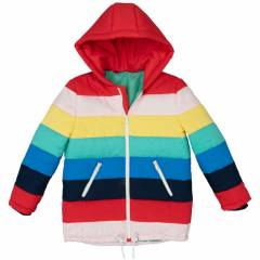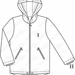 Uyarı, B modeli: Kumaş ölçüsü, patchwork işlemi bitmiş kumaş içindir. Bu parka için biçkiden önce 6 değişik kumaştan bir çizgili kumaş hazırladık. Bunu yapmak için seçtiğiniz kumaşları şerit halinde kesin ve birbirine dikin, şerit eni 7 cm. Dikiş paylarını ütüleyerek açın. Biçki sonrasında şeritlerin dikiş kenarlarında birbirini tamamlamasına dikkat edin. Kapüşonu düz renk kumaştan biçebilirsiniz.