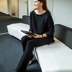 Beden 44, 46, 48, 50, 52 Pantolonun yan boyu bel bandından itibaren 109 cm, paça bolluğu yaklaşık 58 cm Malzeme: Pantolon A: 150 cm enden balıksırtı tüvit: 1.85-1.85-2.20-2.25-2.30 m. Cep torbası için astar, 140 cm ende: 0.35 m her bedene. Tela. Lastik, 2.5 cm ende: 0.45-0.45-0.50-0.55-0.55 m. 1 gizli fermuar, 18-18-20-20- 20 cm. 1 agraf. 1 basık düğme. Uyarı: Pantolon B: 140 cm enden krep: 2.20-2.20-2.35-2.50-2.50 m. Astar ve malzeme için bkz. model A. Kumaş önerisi: Yünlü ya da sentetik katkılı kumaş.