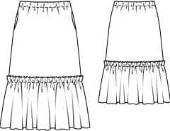 1.80 m her bedene. Bel bandı pervazı için kumaş parçası 140 x 5 cm. Lastik, 2.5 cm ende: