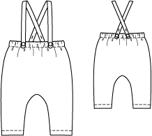 Bebek bedeni 62, 68, 74, 80, 86 Yan boy 33-37-40-44-48 cm Malzeme: 130 cm enden ince triko kumaş: 0.55-0.60-0.60-0.65- 0.70 m. Tela. 2 cm enden lastik: 0.50-0.50-0.55-0.55-0.55 m. 4 düğme. Çift iğne. Kumaş önerisi: Düz ya da esnek ince triko kumaş.