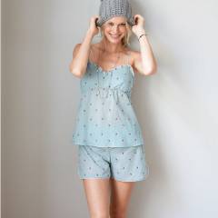 Beden 34, 36, 38, 40, 42 Malzeme: 150 cm enden batist: 0.80 m her bedene. Tela. Verev bant, 2 cm ende: 1.75-1.80-1.85-1.95-2.00m. 5 küçük düğme. Uyarı: 132 şort ve 123 kısa kom- binezon için toplam kumaş ölçü- sü 123 numaralı modelde. Kumaş: İnce pamuklu kumaş.
