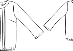 Beden 44, 46, 48, 50, 52 Arka boy yaklaşık 75 cm Malzeme: Yıkanmış ipek, 135 cm ende: 2.50-2.50-2.55-2.60-2.60 m. Tela. 7 mm ende lastik: 1.05-1.10-1.15-1.25-1.30 m. Kumaş kaplı 5 düğme. Kumaş önerisi: İnce ve dökümlü kumaş.