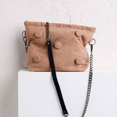 2 D-halka, 2.5 cm ende. 1 Çanta sapı zincir. Dokuma tela.