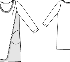 Beden 36, 38, 40, 42, 44 Belden itibaren etek boyu 54 cm 7/8 kol boyu (yaklaşık 6 cm kısa) Malzeme: 150 cm enden ince elastik jarse: 2.00-2.00-2.05-2.05-2.10 m. 150 cm enden keten: 1.10 m her bedene. Çift iğne. Kumaş önerisi: İnce elastik jarse ve keten.