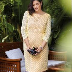 Beden 44, 46, 48, 50, 52 Belden itibaren boy 64 cm Malzeme: 130 cm enden gipür dantel: 2.20-2.70-2.70-2.70-2.70 m. Duble için batist, 140 cm ende: 1.80-1.80-1.80-2.00-2.00 m (kolsuz). 1 gizli fermuar, 60 cm ve özel makine ayağı. Kumaş önerisi: Dantel kumaş. İnce ve şeffaf olmayan astar kumaş.