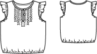 Beden 104, 110, 116, 122, 128 Arka boy 36-37-38-41-42 cm Malzeme: 150 cm enden batist: 0.65 m her bedene. Ütülenebilir tela parçası. 5 mm ende lastik: 0.60-0.65-0.65-0.70-0.70 m. 2 küçük düğme. Kumaş önerisi: İnce pamuklu ya da sentetik kumaş.