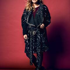 Beden 44, 46, 48, 50, 52 Arka boy yaklaşık 95 cm Uyarı: Bu ceket 3 değişik kumaştan dikildi, düz, desenli ve farklı yüzeyli. Ön ve arka parça ile kollar patchwork gibi birleştirildi. Hangi parçanın hangi kumaştan biçildiğini daha iyi görmeniz için kumaşları I – III arası numaraladık. Cep kemerde kumaşın tersi üstte kullanıldı. Malzeme: Triko görünümlü kumaş (kumaş I), 140 cm ende: 2.00 m. Buklet (kumaş II), 150 cm ende: 0.90 m. Jarse (kumaş III), 145 cm ende: 1.00 m. Çift iğne. Kumaş önerisi: İnce ceket kumaşı.