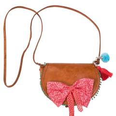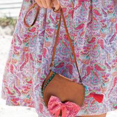 Napa deri parçası ya da suni deri, 35 x 35 cm. Deri bant, 1 cm ende: 1.20 m. Fiyonk bandı için kumaş parçası 20x20 cm. Fisto bordür, 1.5 cm ende: 0.35 m. Ponponlu bordür, 1 cm ende: 0.40 m. Ponpon için yün. 10 küçük boncuk, 7 mm çapta. 1 toka, 1.5 cm bolluk. 5 metal zımba, 2 metal halka, 1.5 cm çapta. Yapışkan. Tekstil yapışkanı.