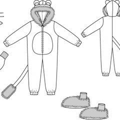 Eldiven, patik, maske ile. Beden 104, 110, 116, 122, 128