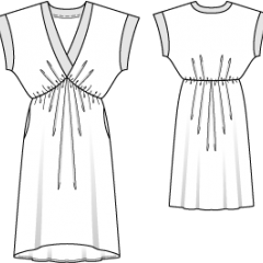 Beden 44, 46, 48, 50, 52 Belden itibaren boy ön ortada 67 cm, arka ortada 77 cm. Malzeme: 140 cm enden ipek saten: 2.80 -2.80-2.90-2.90-2.90 m. Garnitür olarak düz renk krep saten, 135 cm ende: 0.50 m. Tela. 1 cm enden lastik: 0.90-0.90-1.00-1.05-1.10 m. Kumaş: İnce ve dökümlü kumaş.