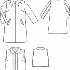 Kumaş önerisi: Biraz dik duran mantoluk kumaş. Katları ayrılabilen hakiki çift yüzlü kumaş kullanın. Yelek için ince kapitone kumaş.