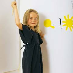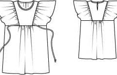 Malzeme: Pamuklu jarse, 150 cm eninde: 0.95-1.00-1.00-1.05-1.15 m. Tela bant. 1 küçük düğme.