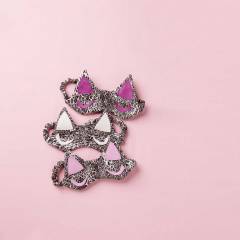 Kumaş önerisi: Penye, yumuşak jarse, keçe. Leopar desenli pamuklu kumaş. Malzeme: 0.20 m kumaş, 140 cm en. 0.35 x 020 m iki yüzü yapışkanlı dokuma tela. Gözler ve kulaklar için keçe parçası, 0.40 m. 1.5 cm ende lastik. Patron kâğıdı.