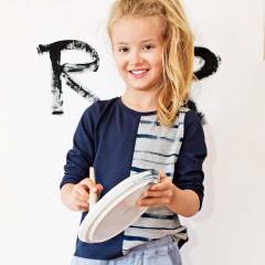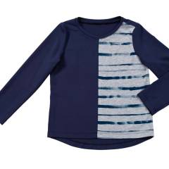 Uyarı: Bu modelde gri penye kumaşa mavi kumaş boyası ile çizgiler boyanmıştır. Doğrudan çizgili kumaştan da dikebilirsiniz.