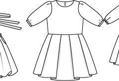 Ve alt etek Beden 116, 122, 128, 134, 140 Belden itibaren etek boyu 35-37-39-41-43 Malzeme: 150 cm enden buklet: 1.20-1.25-1.30-1.35-1.40 m. 150 cm enden tül: 0.75-0.80-0.85-0.90-0.95 m. 140 cm enden astar: 0.45-0.45-0.45-0.50-0.50-0.50 m. 1.5 cm ende kadife bant: 1.30-1.35-1.35-1.40-1.40 m. Tela. Tela bant. 1 gizli fermuar, 40-40-60-60-60 cm uzunluk ve özel makine ayağı. İlmek ilik için saten kurdele, 3 mm en: 0.10 m. 2 küçük top düğme. 1 basık düğme alt etek için. Kumaş önerisi: Yünlü ya da da sentetik katkılı elbise kumaşı. Alt etek için sert tül.