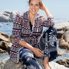 A: Baskılı pamuk karışımlı ceketlik B: Yün krep C: Desenli jakar