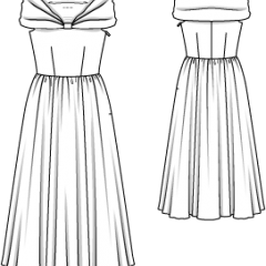 Beden 36, 38, 40, 42, 44 Arkadan boy yak 93 cm Malzeme: Organze, 145 cm eninde: 5,20 m tüm bedenler için, astar 140 cm eninde: 4,70 m. 1 fermuar, 40 cm uzunlukta ve makineniz için fermuar ayağı Kumaş önerisi: Tok ince elbiselik kumaşlar