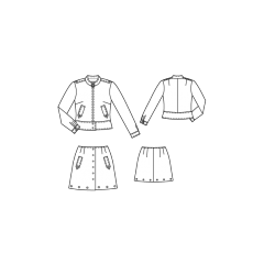 Orijinal kumaş: Suni deri, 150 cm eninde: 2,00 – 2,00 – 2,00 – 2,20 – 2,20 m. Cep torbası için astar, 140 cm eninde: 0,25 m